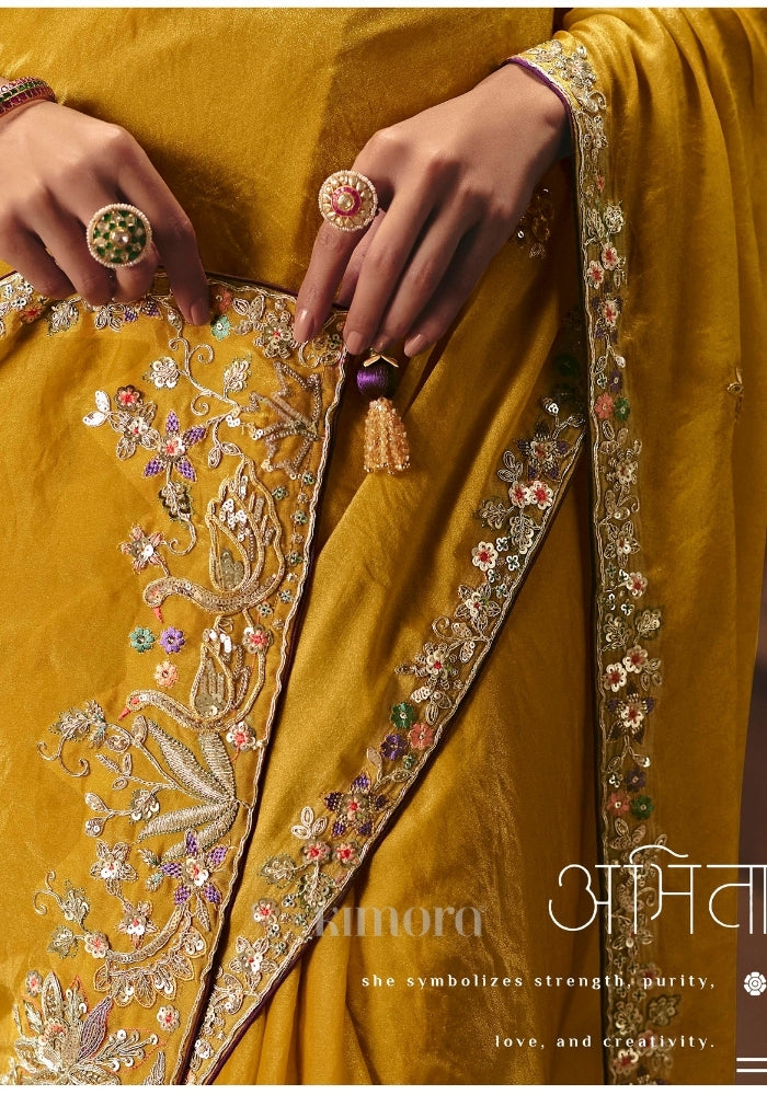 - Amita Tissue Silk Floral Zari Work Saree In Yellow
