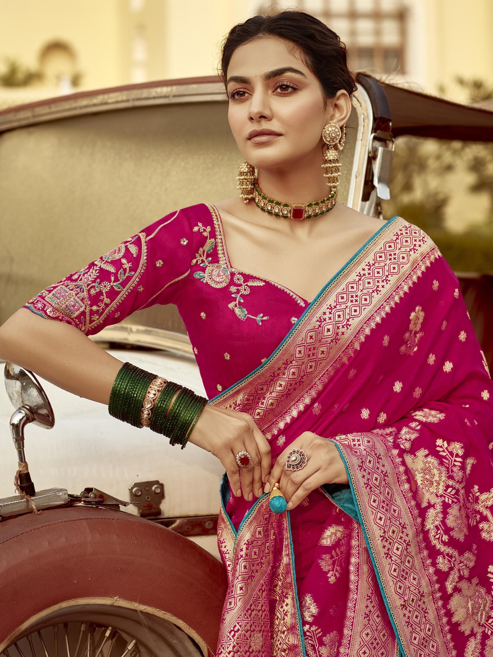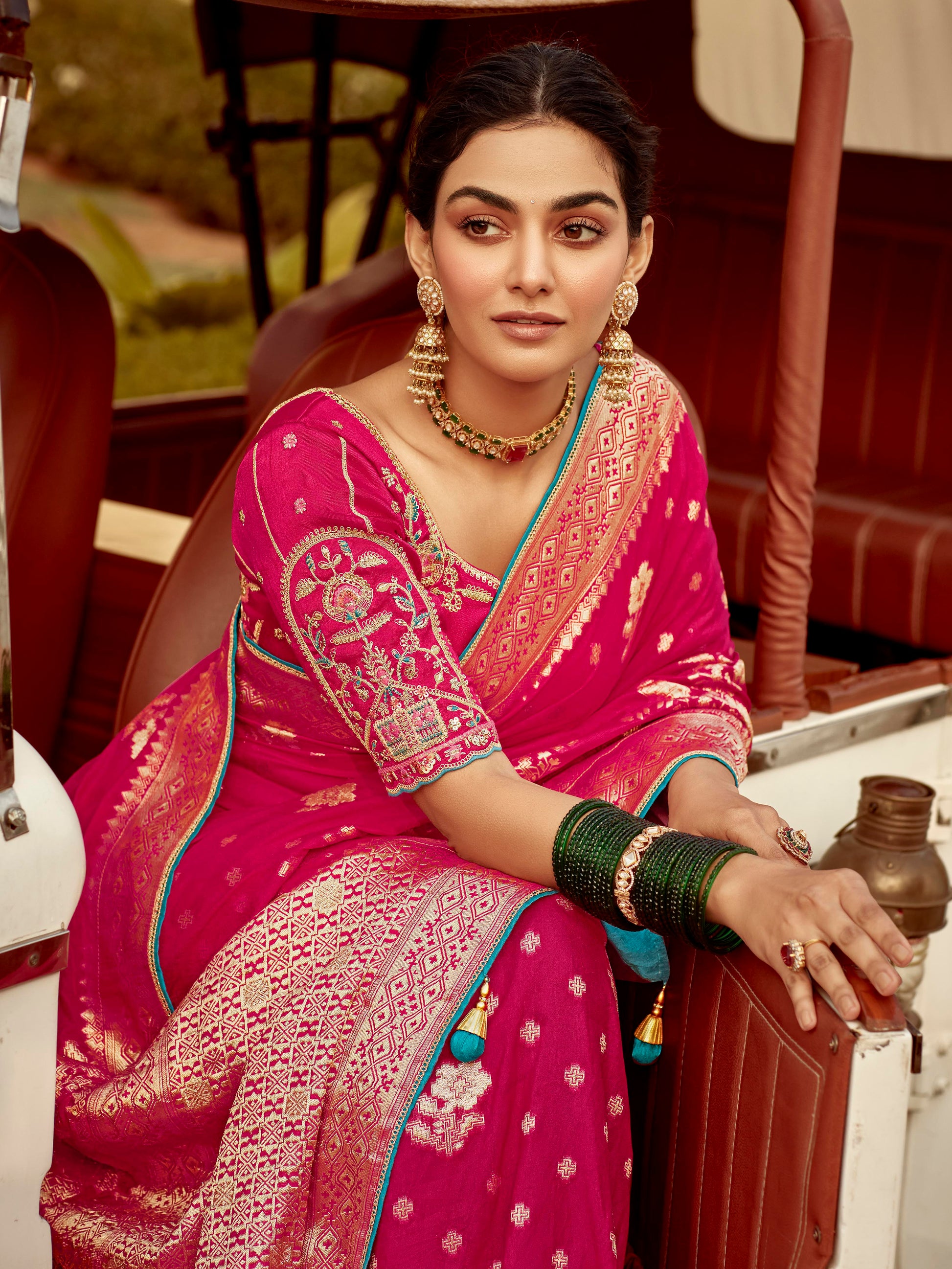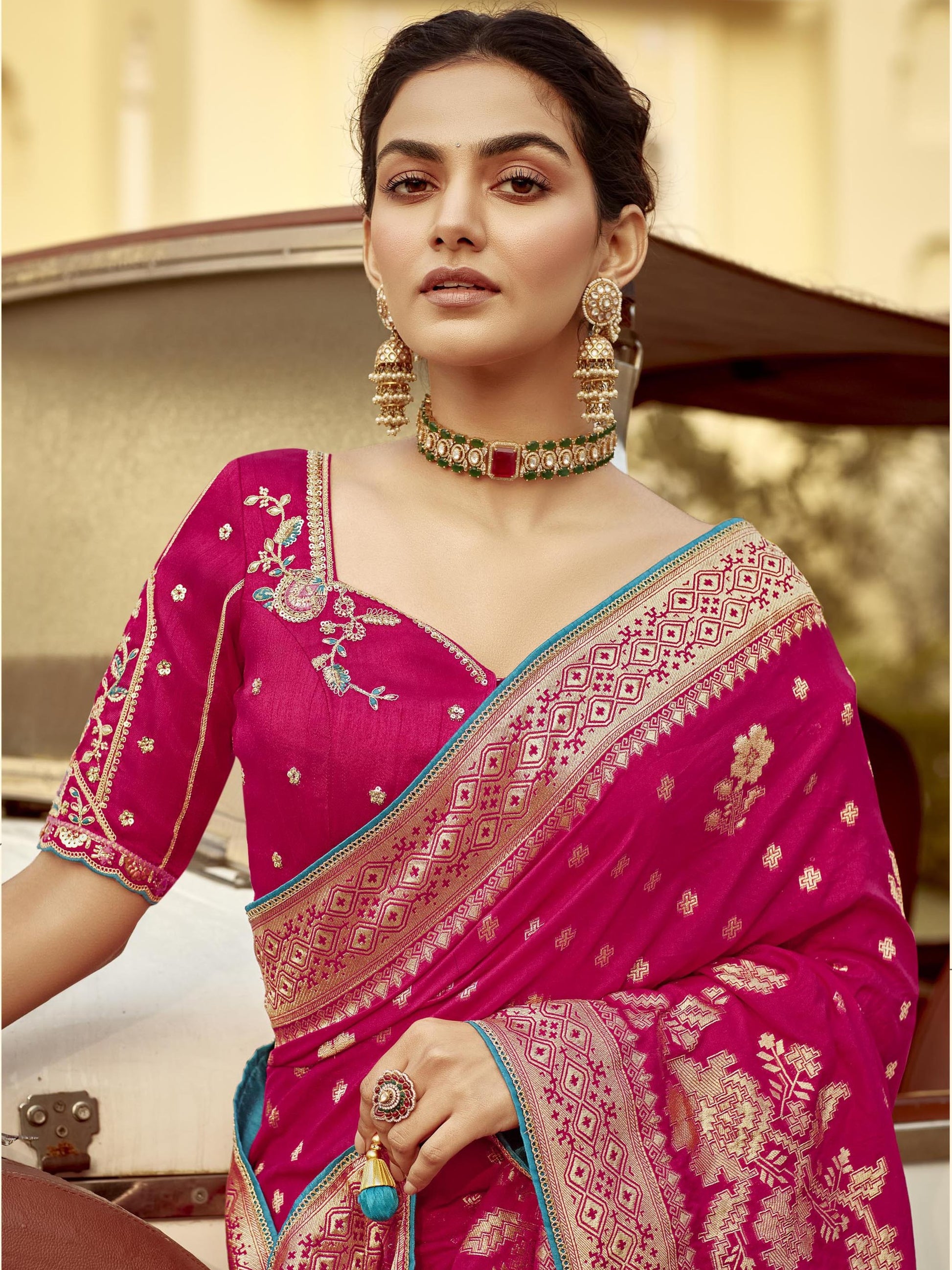 - Pink Silk Saree – A Classic Statement