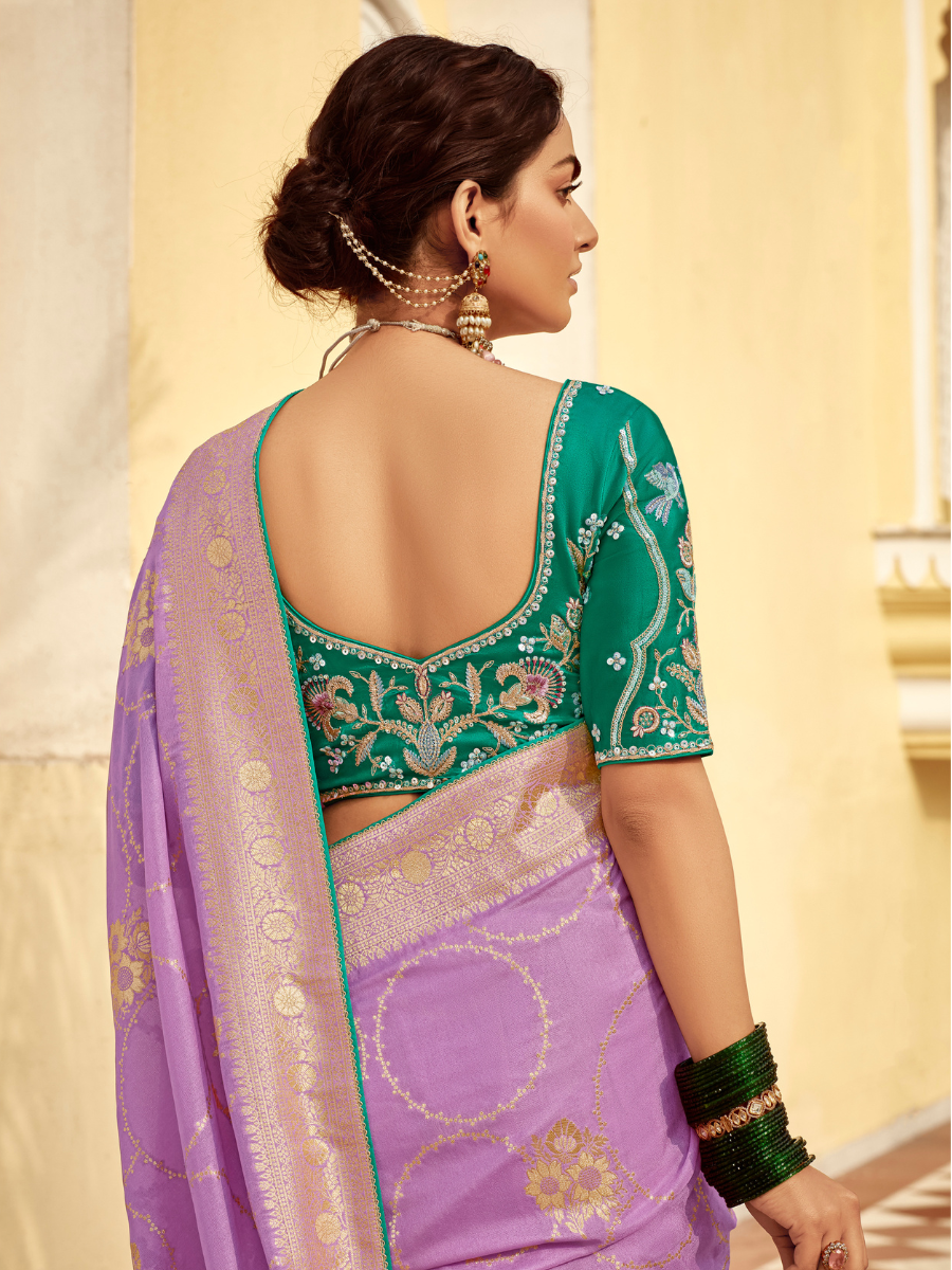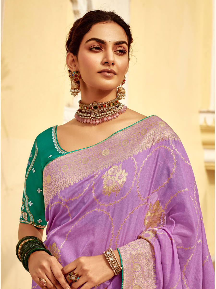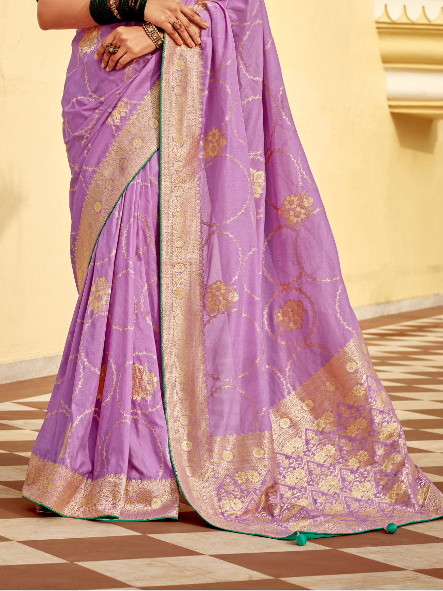 - Lavender Banarasi Silk Saree With Zari Weaving
