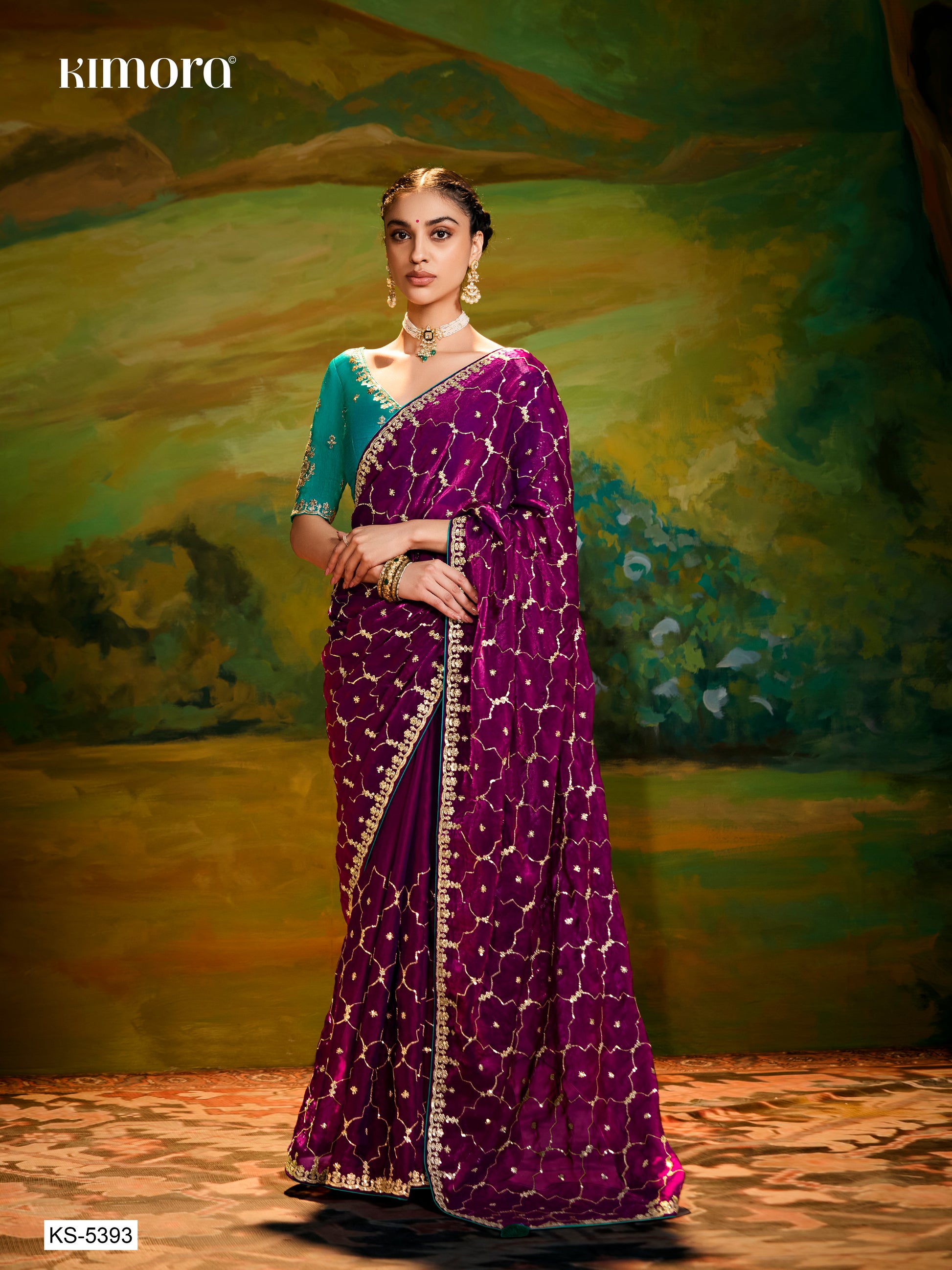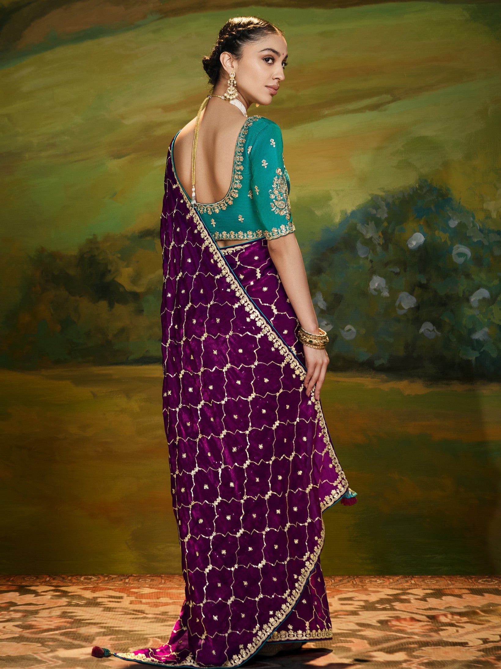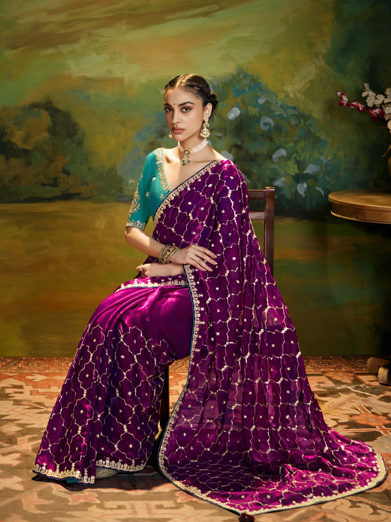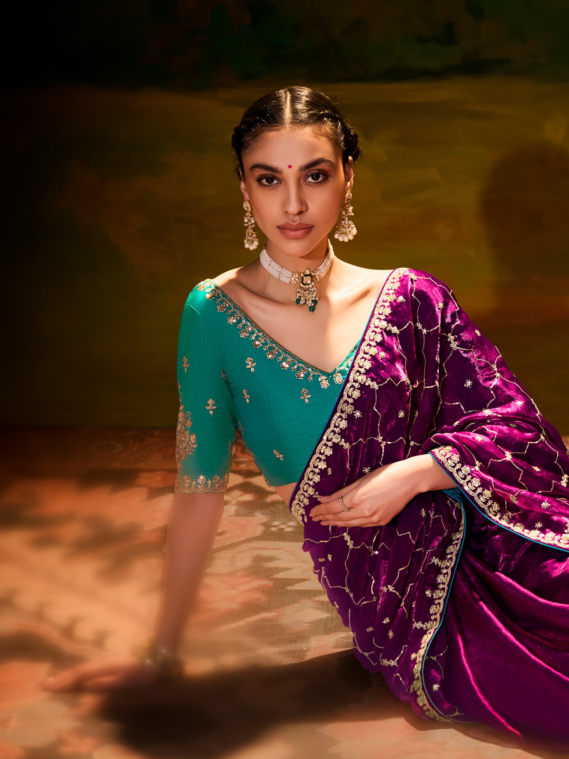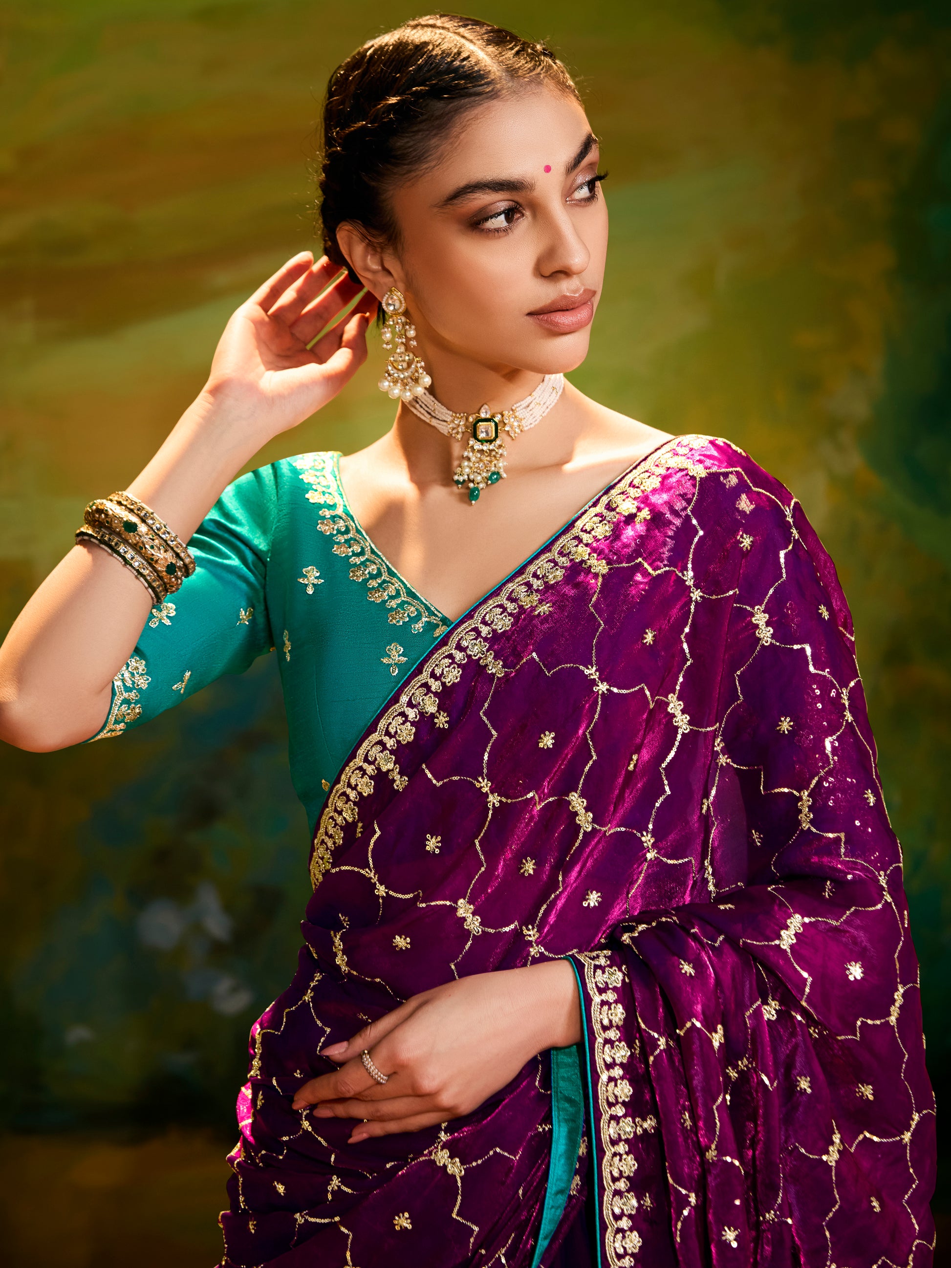 Maroon Designer Silk Saree with Sequin Work & Teal Blouse