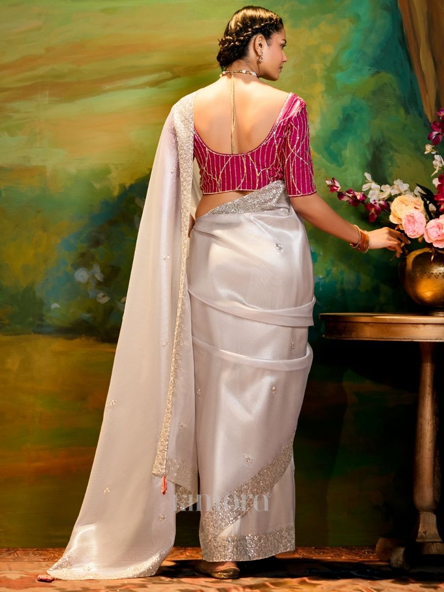 Off-White Organza Saree with Red Blouse