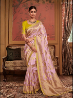 Pink Silk Woven Saree With Contrasting Yellow Blouse