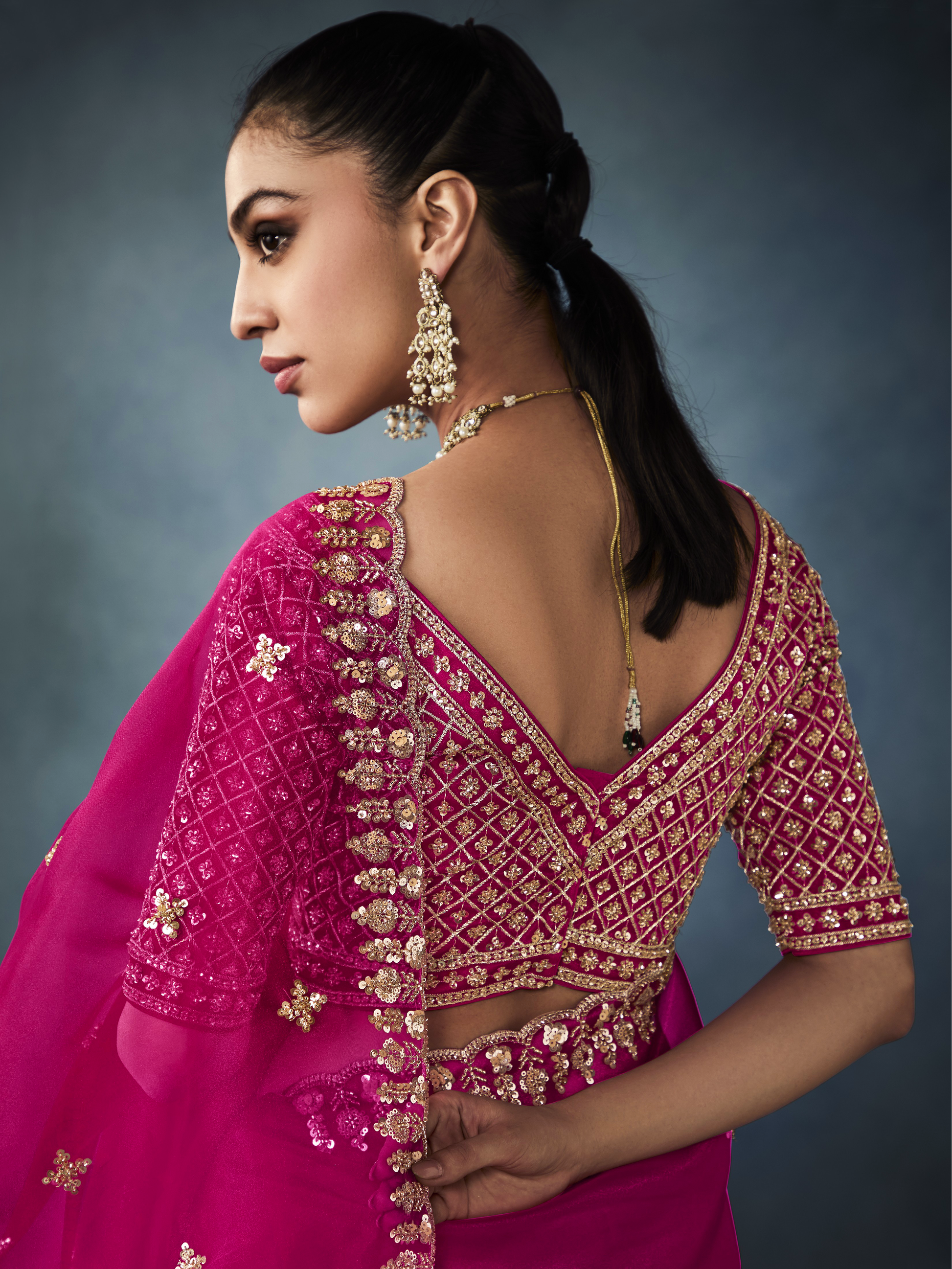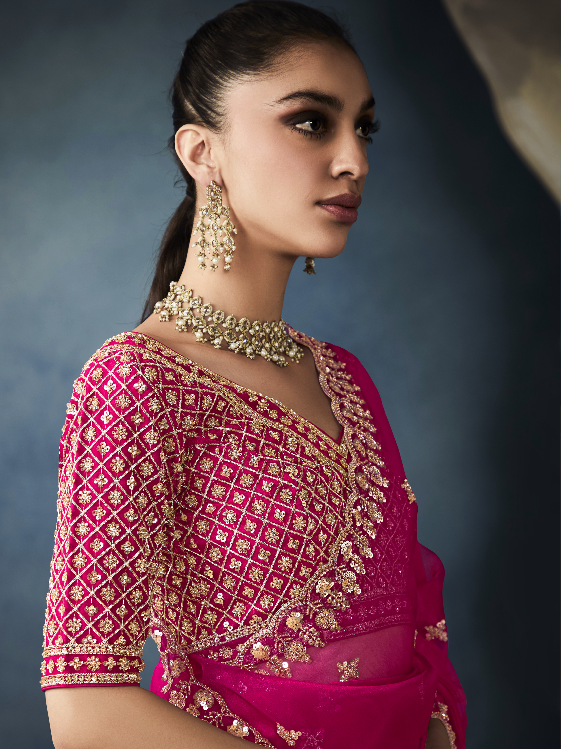 - Pink Tissue Embroidered Fancy Heavy Border Saree
