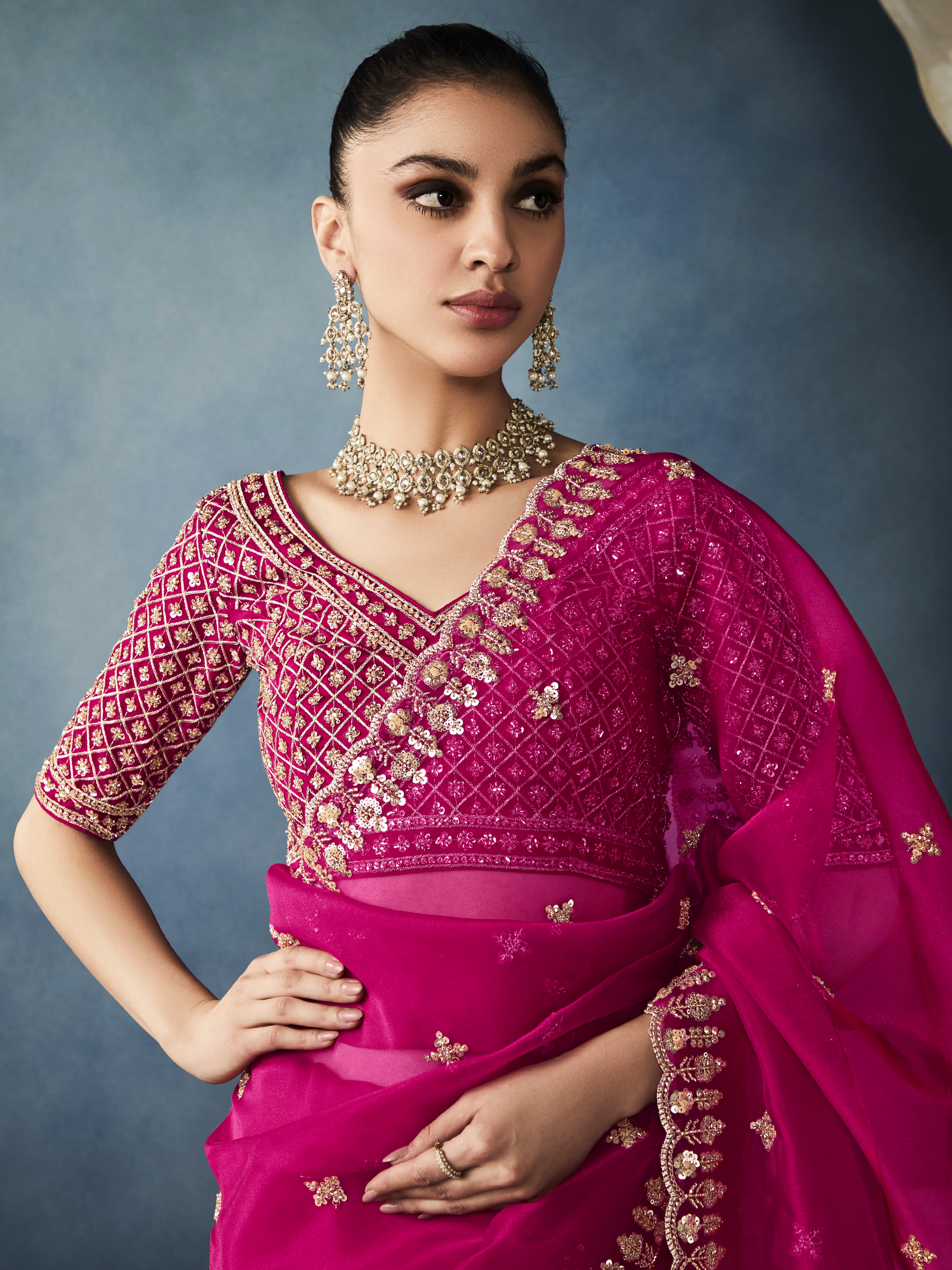 Pink Tissue Embroidered Fancy Heavy Border Saree