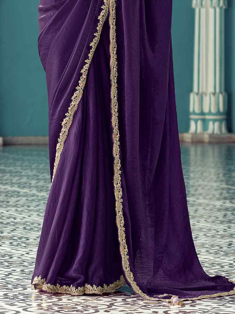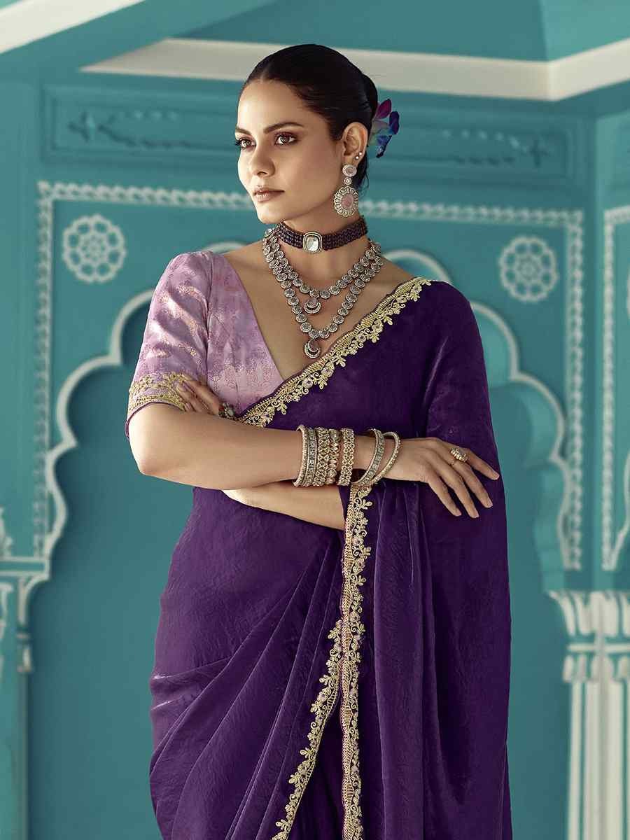 - Purple Pure Fancy Silk Saree with Golden Embroidery Work