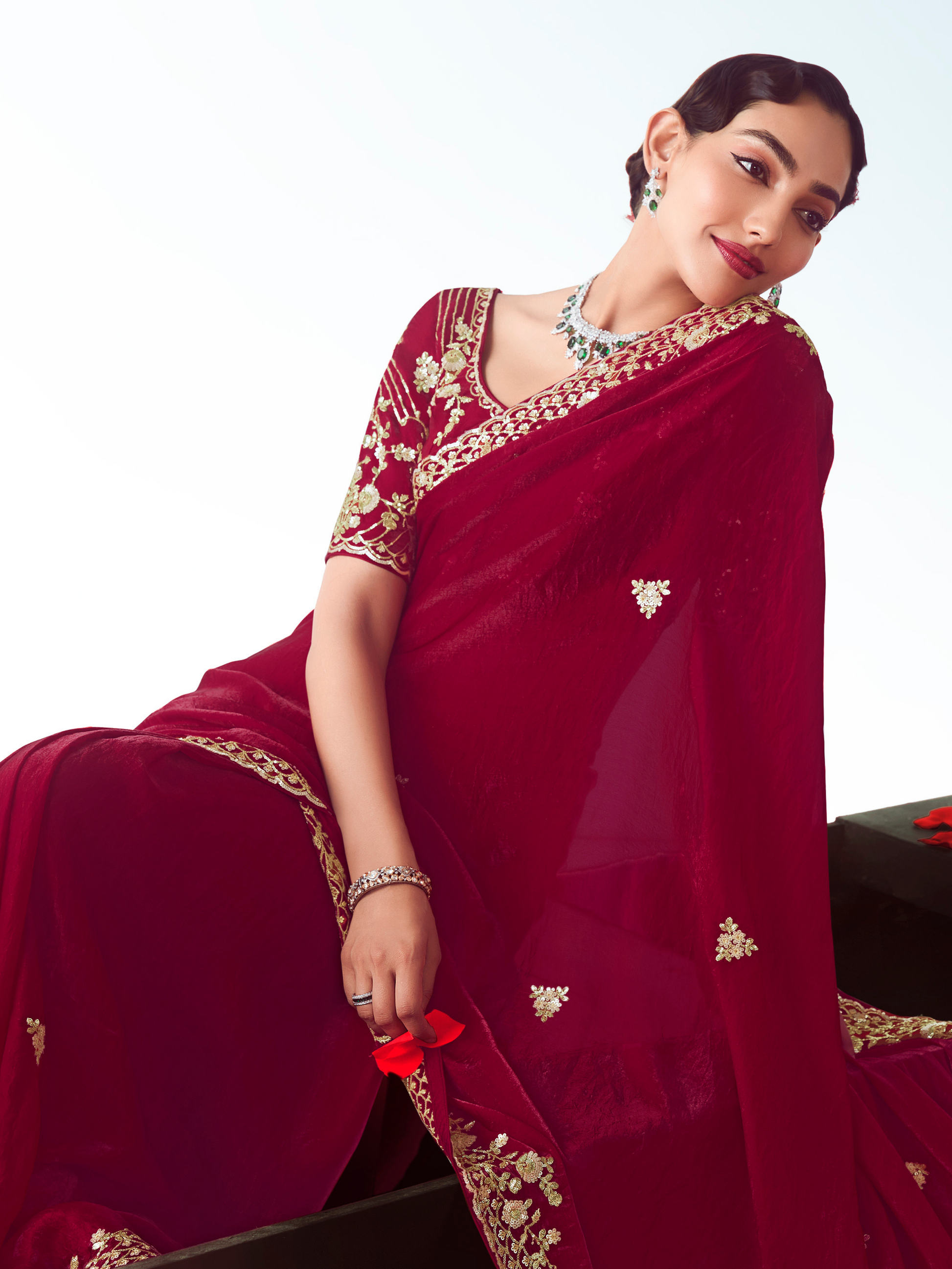 We have noticed that many sellers are using our original images to promote low-quality copies of our sarees. Please be aware: