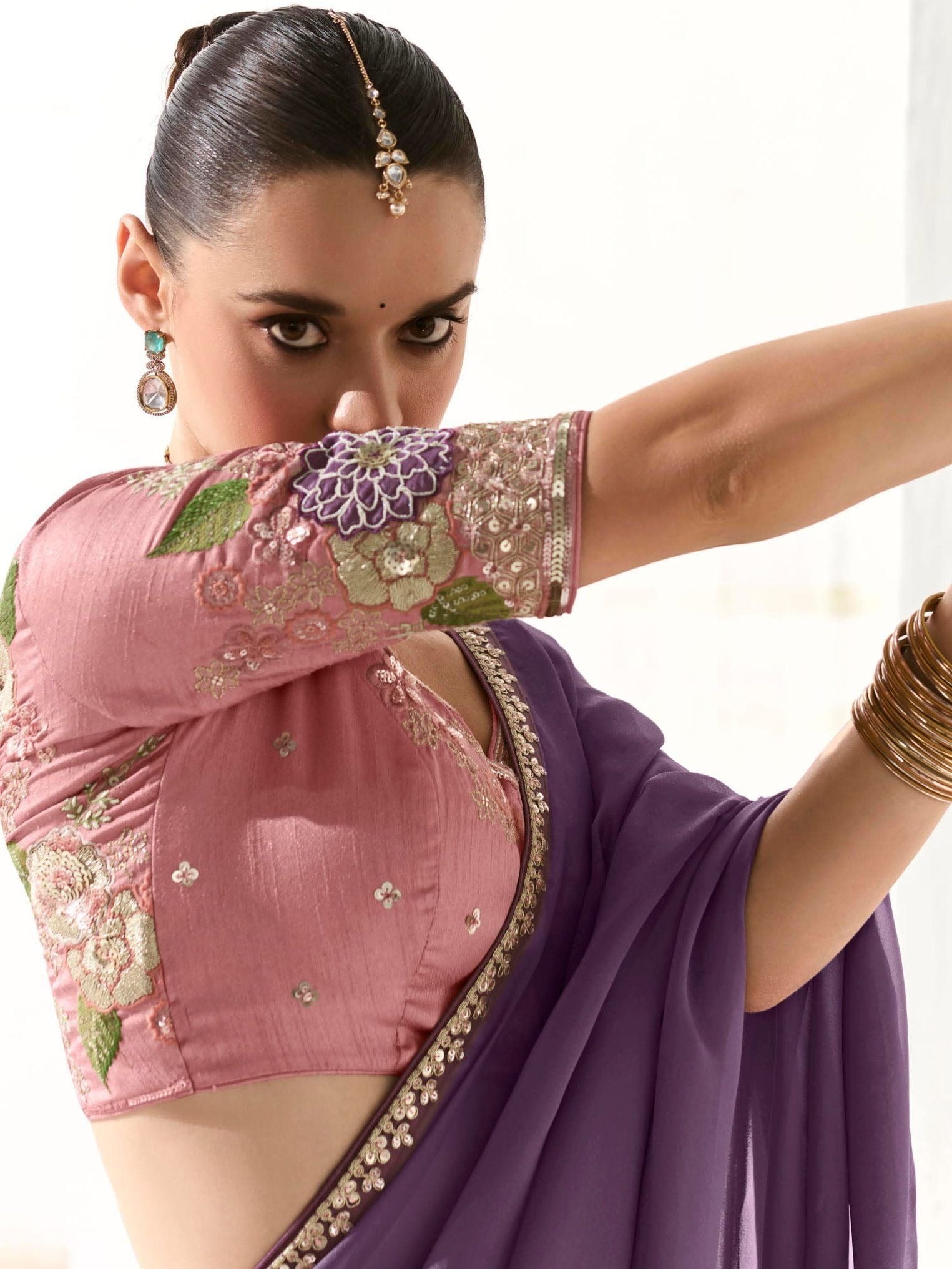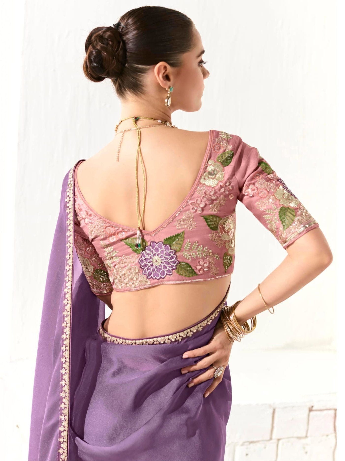- Royal Purple Silk Saree with Light Lavender Blouse – A Symphony of Shades