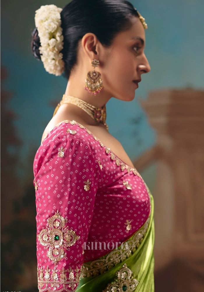 - Shriya Tissue Silk Bandhej Saree In Multi Color
