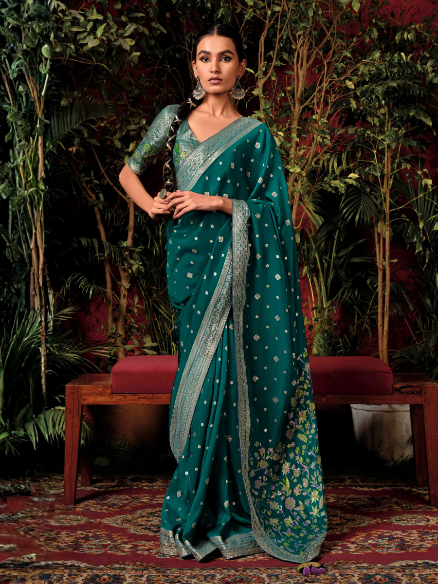 - Teal Green Silk Saree By Kimora