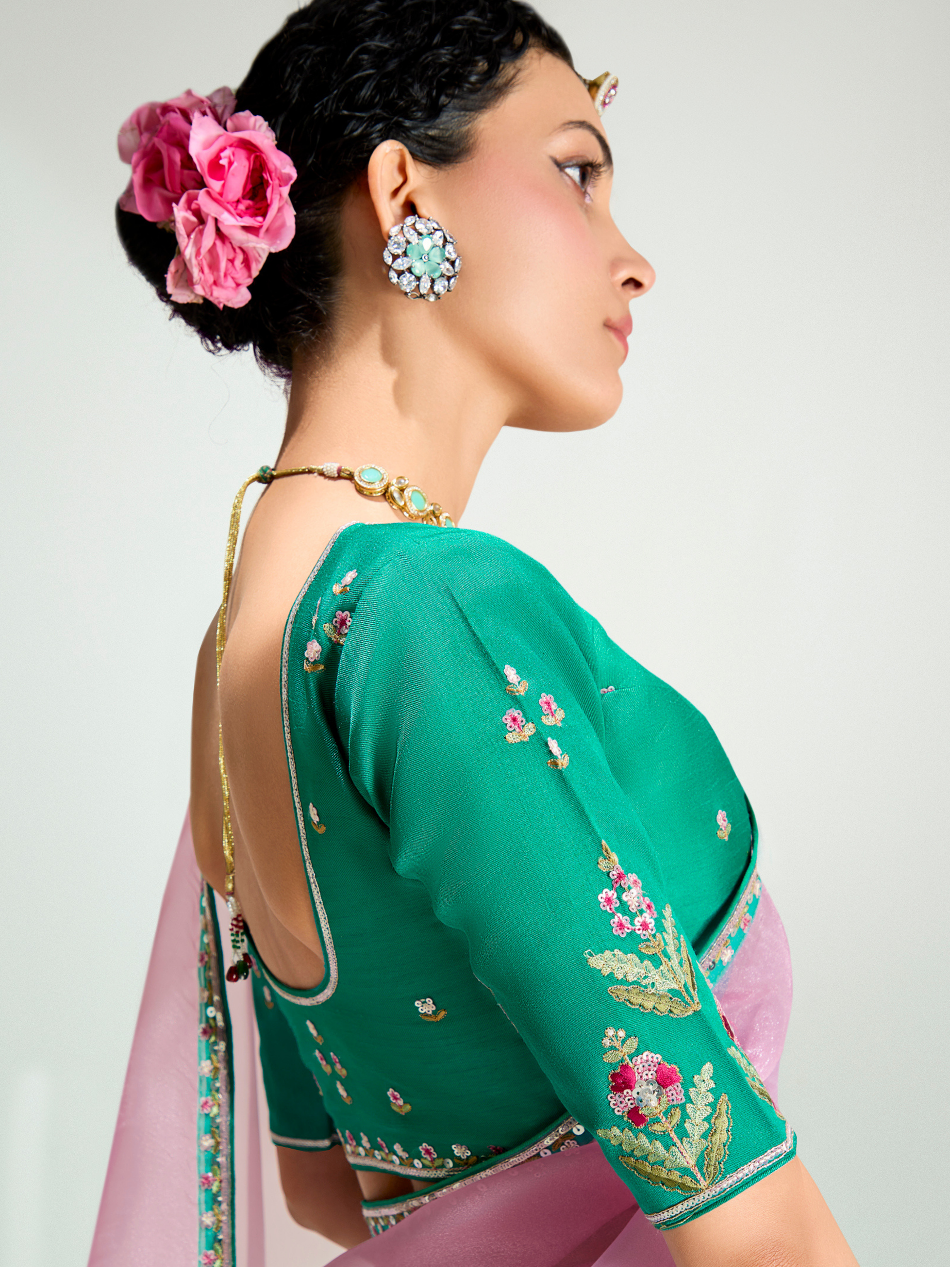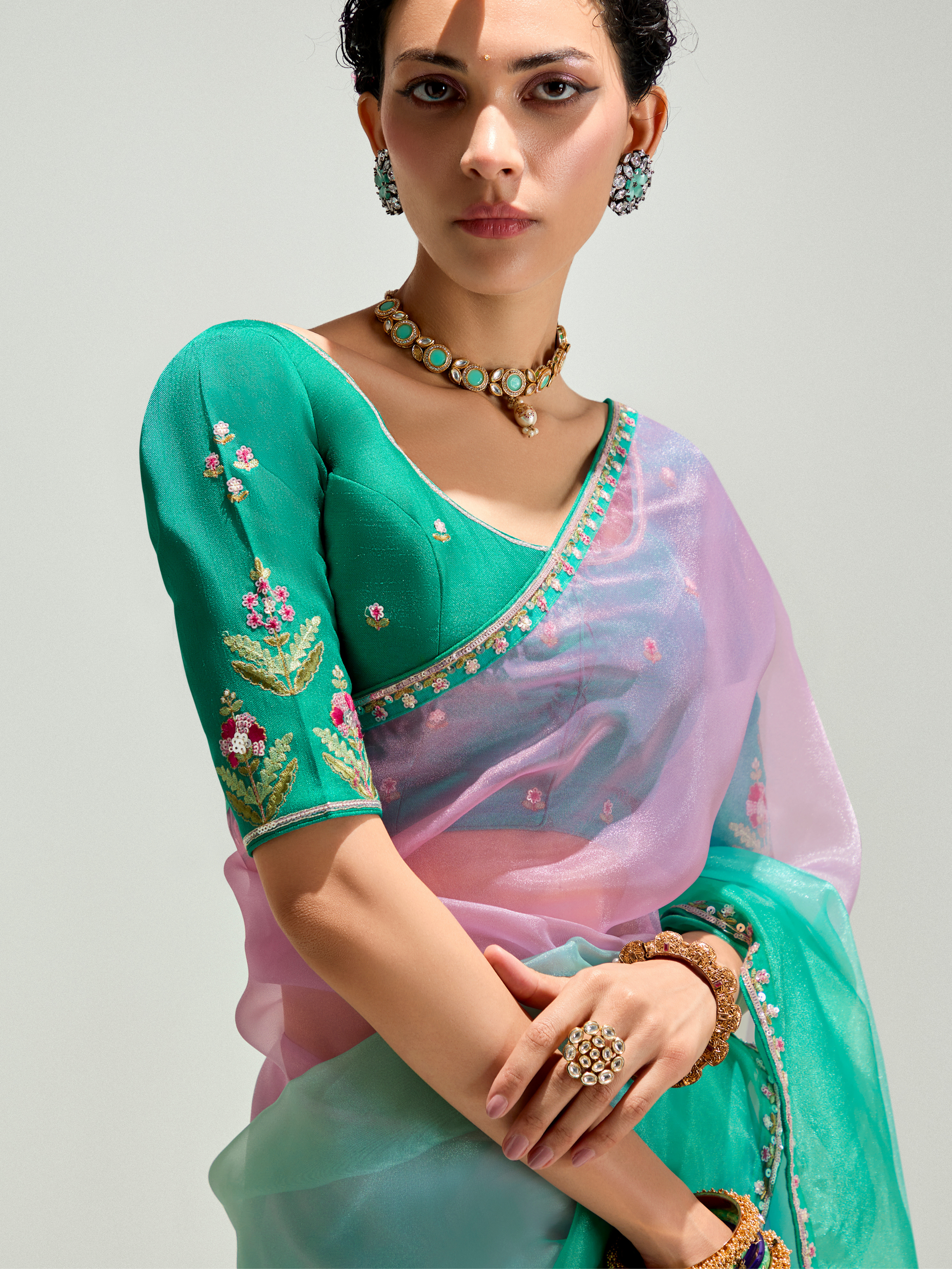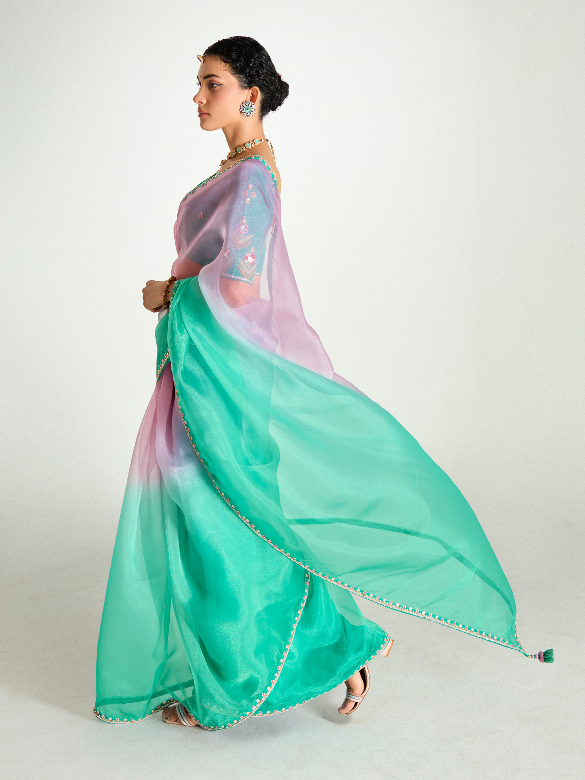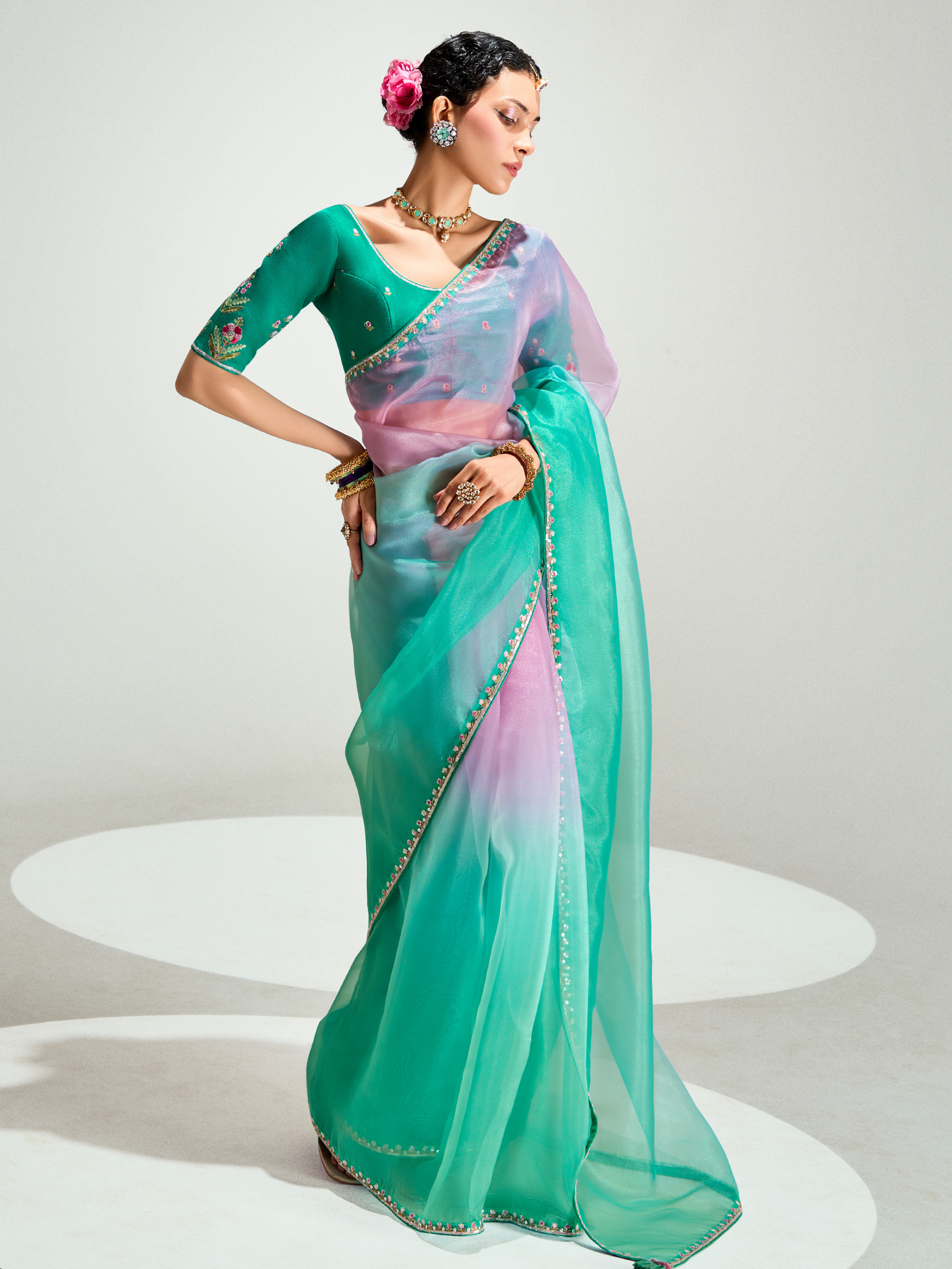 - Teal Shade Organza Saree
