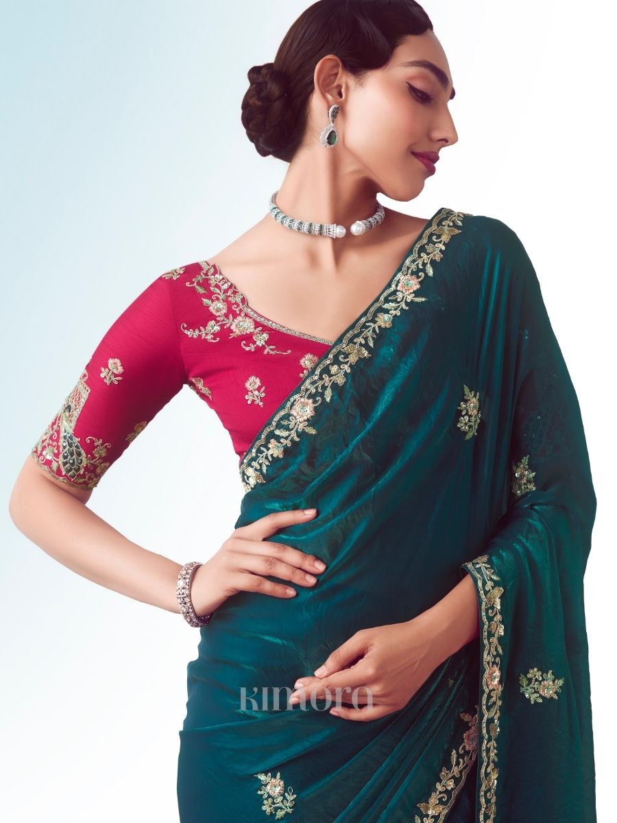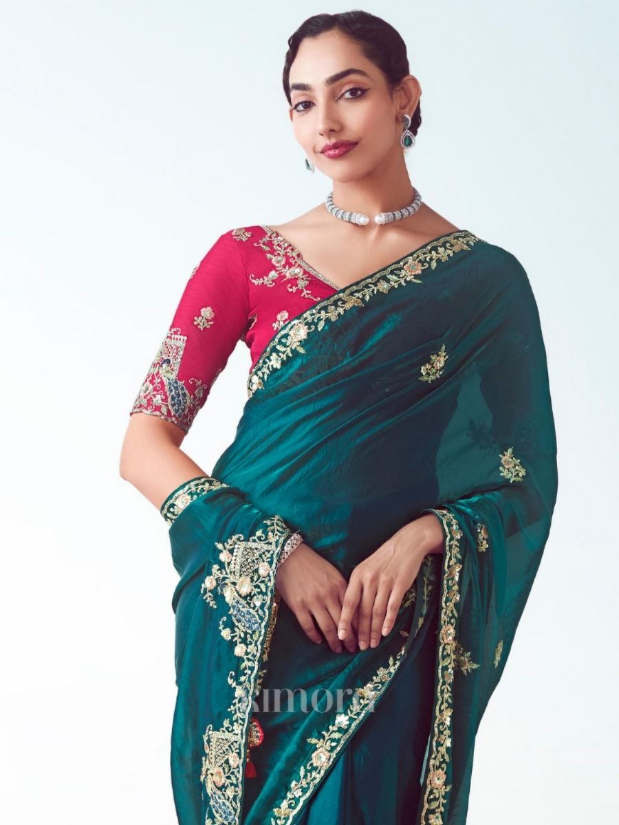 Ishara Tissue Silk Saree On Peacock Blue