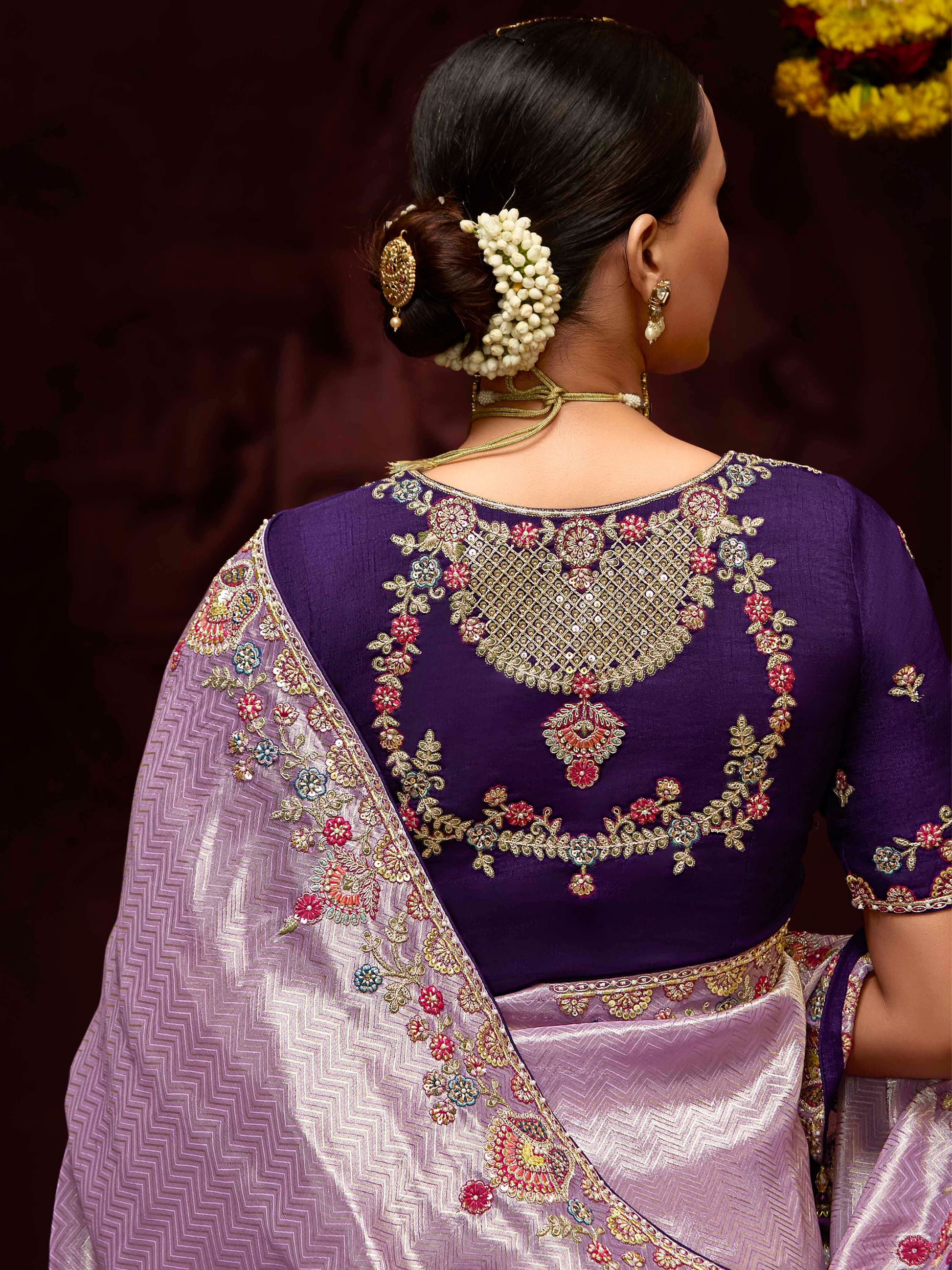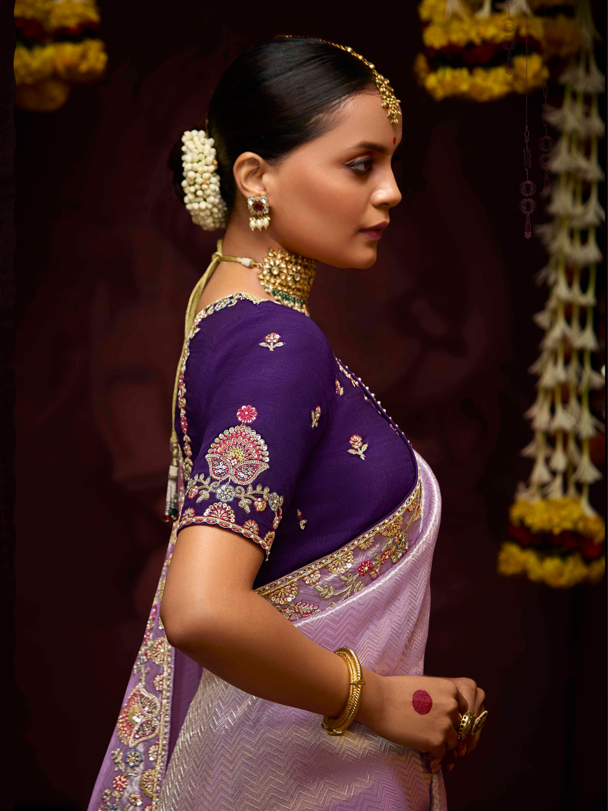 Lavender Banarasi Viscose Saree with Royal Purple Blouse