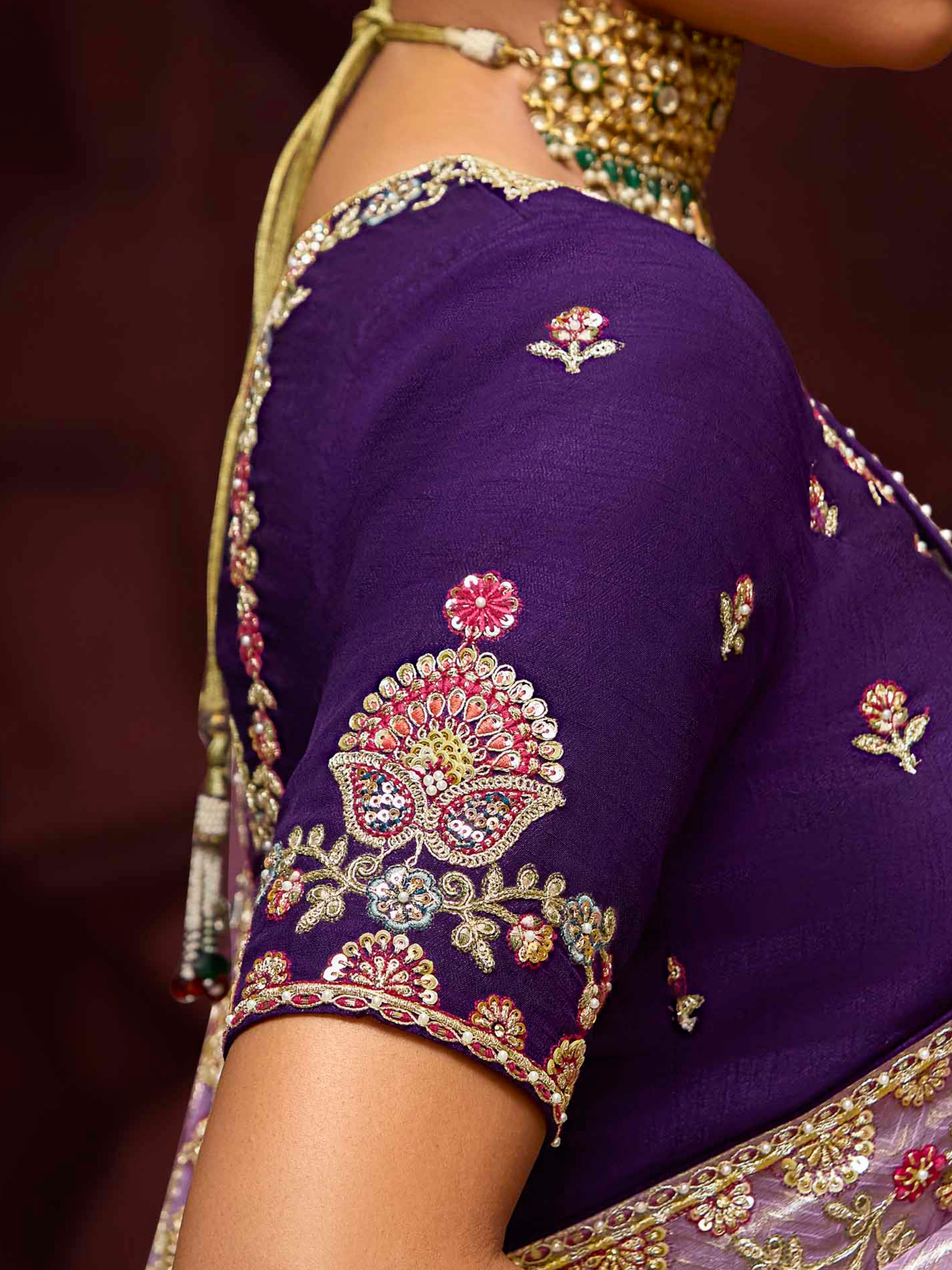 - Lavender Banarasi Viscose Saree with Royal Purple Blouse
