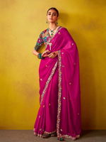 Step into grandeur with our TIMELESS SAREE OF OPULENCE, a magenta-pink masterpiece designed for women who embrace tradition with a bold, luxurious edge. Crafted from rich, lustrous fabric, this saree features intricate embroidery and exquisite detailing that radiates elegance from every angle.