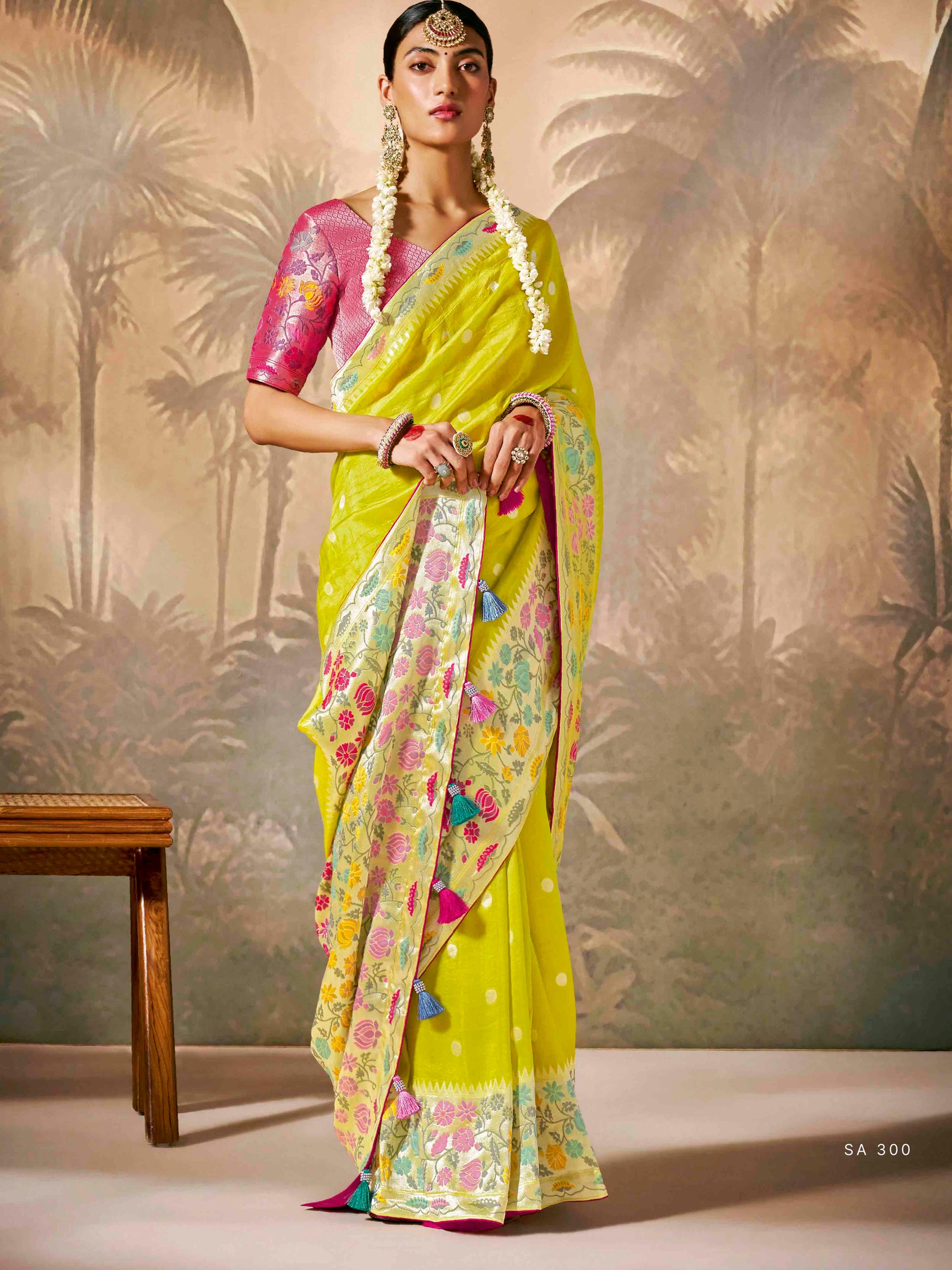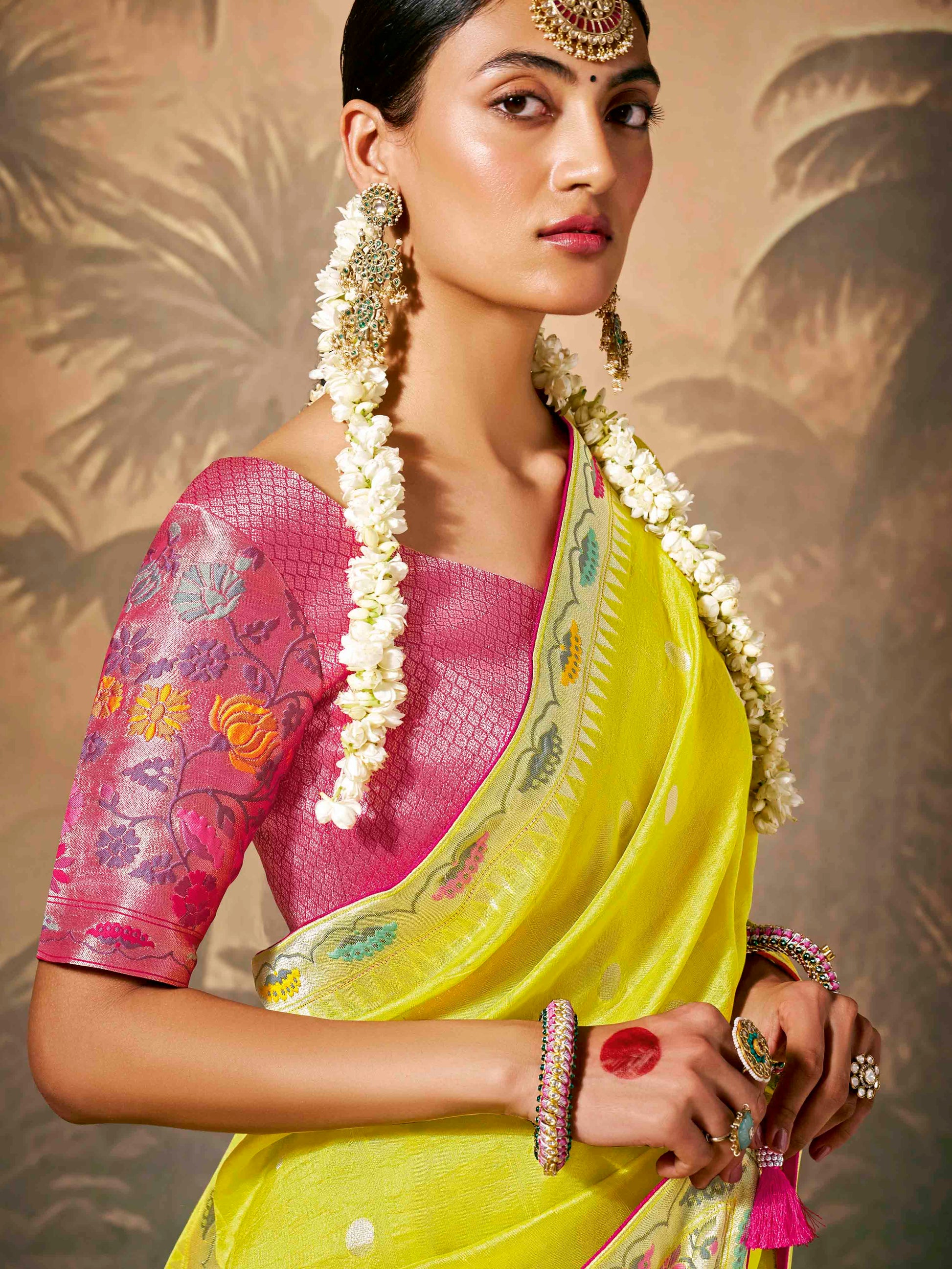 Add vibrant charm to your festive look with this Yellow Saree paired with a Red Blouse. The bright yellow symbolizes happiness and positivity, while the red blouse adds a bold, traditional touch. Perfect for weddings, haldi ceremonies, festivals, poojas, and family functions.