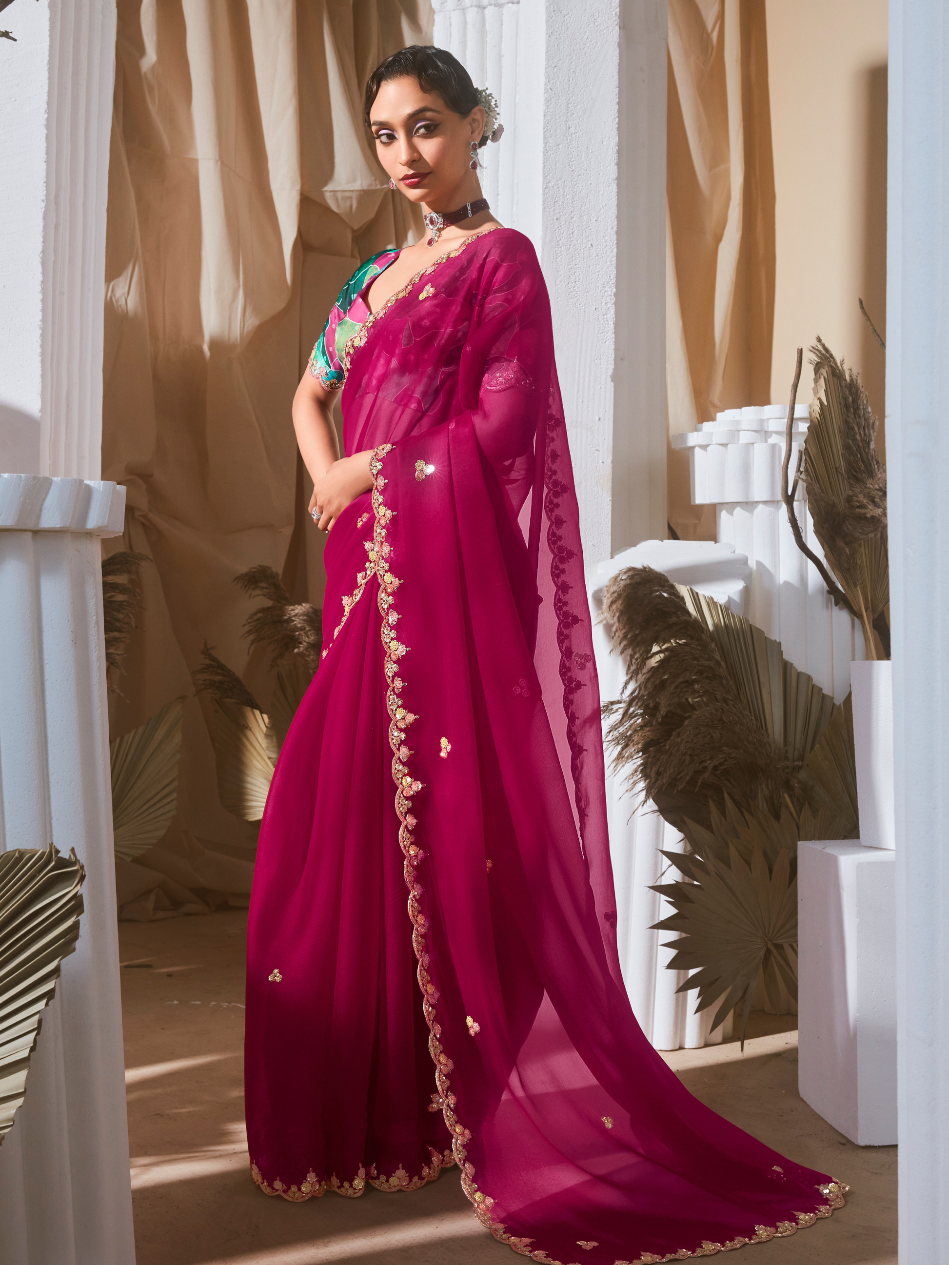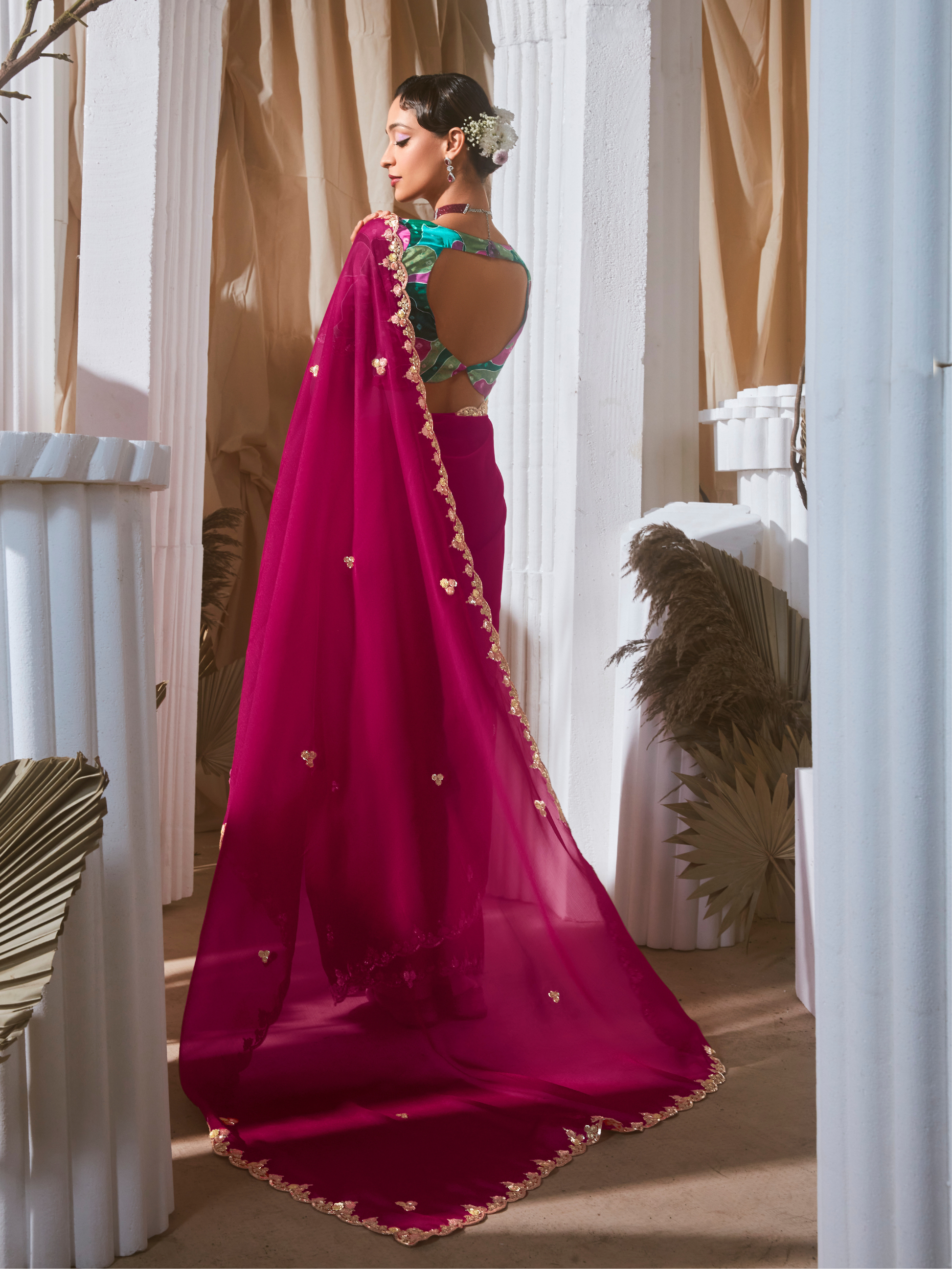 Related Keyphrases: Wedding saree, party saree, festive saree, sequins saree, flower print blouse saree