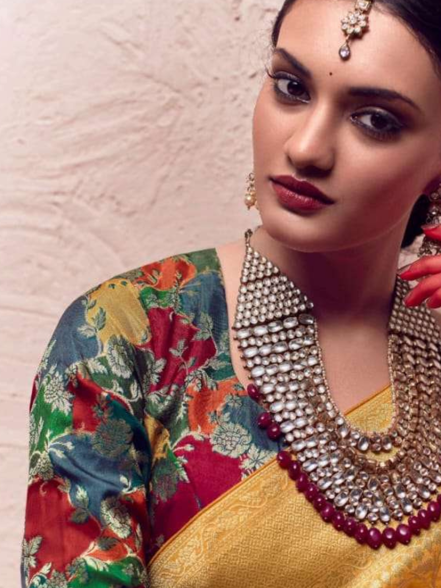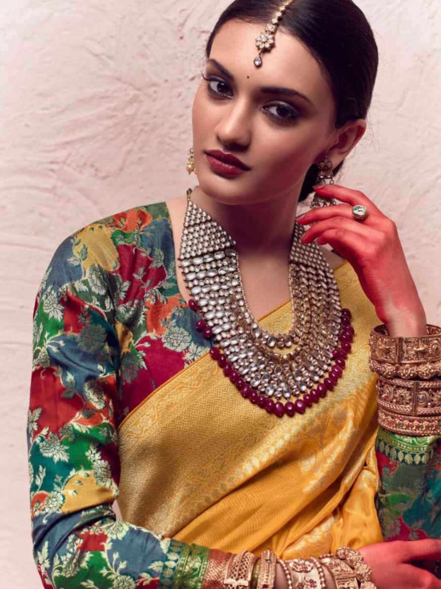 Pair it with heavy jewelry and a matching blouse to complete the traditional look.
