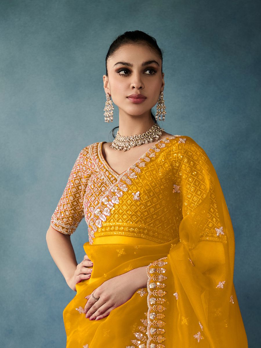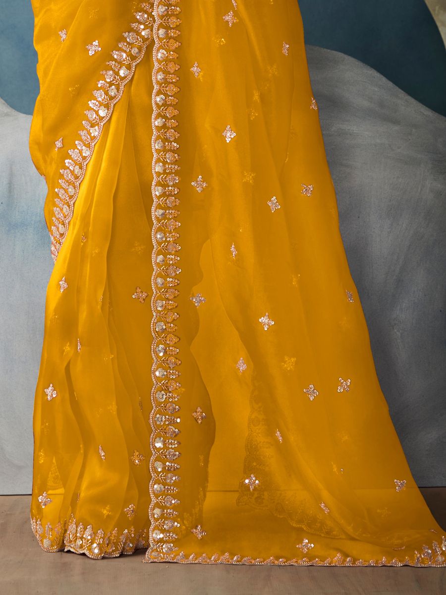 - Yellow Embroidery Georgette Saree with Designer Blouse