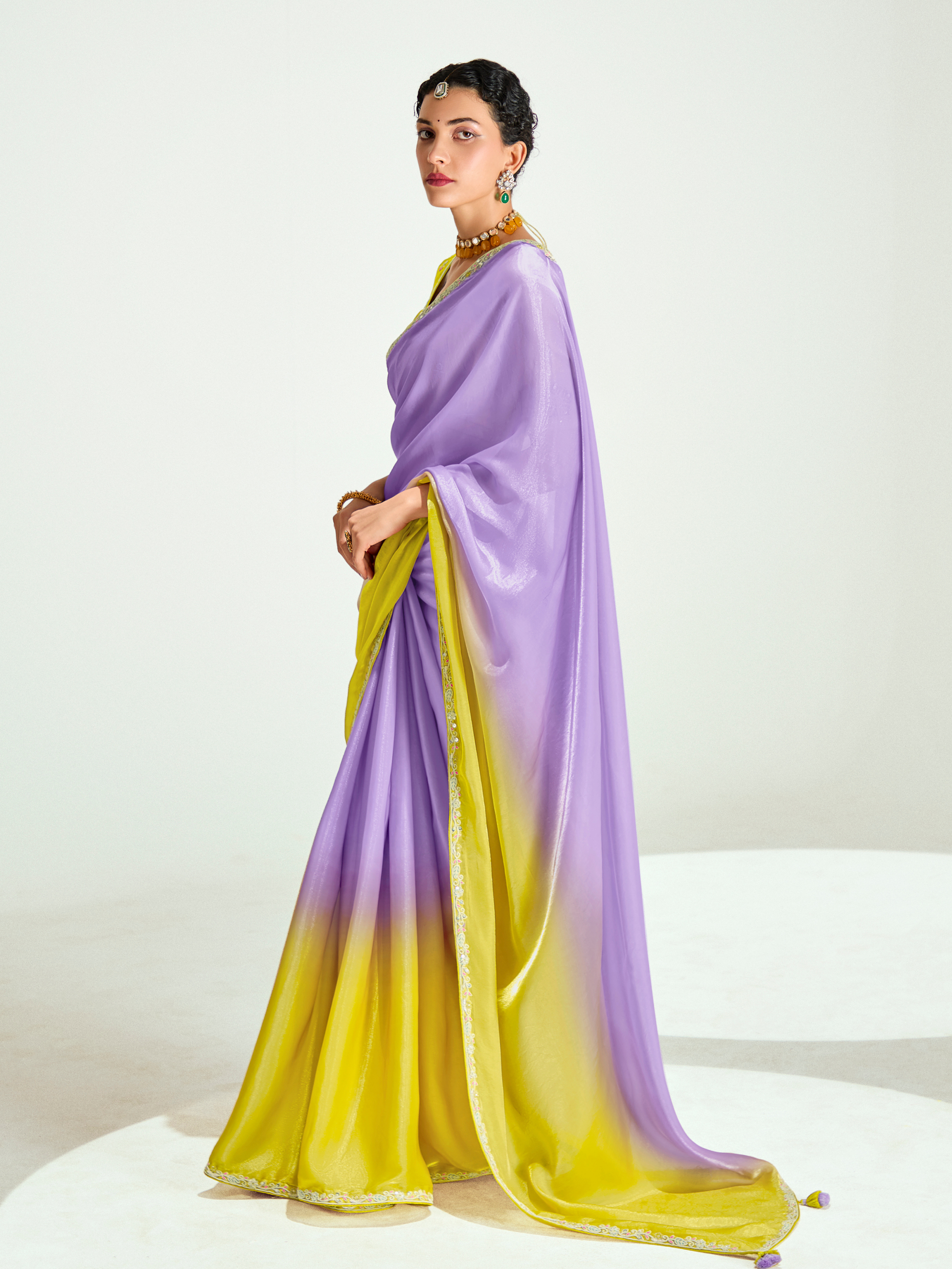 - Yellow Organza Tissue Silk Saree with Multi Sequins Work