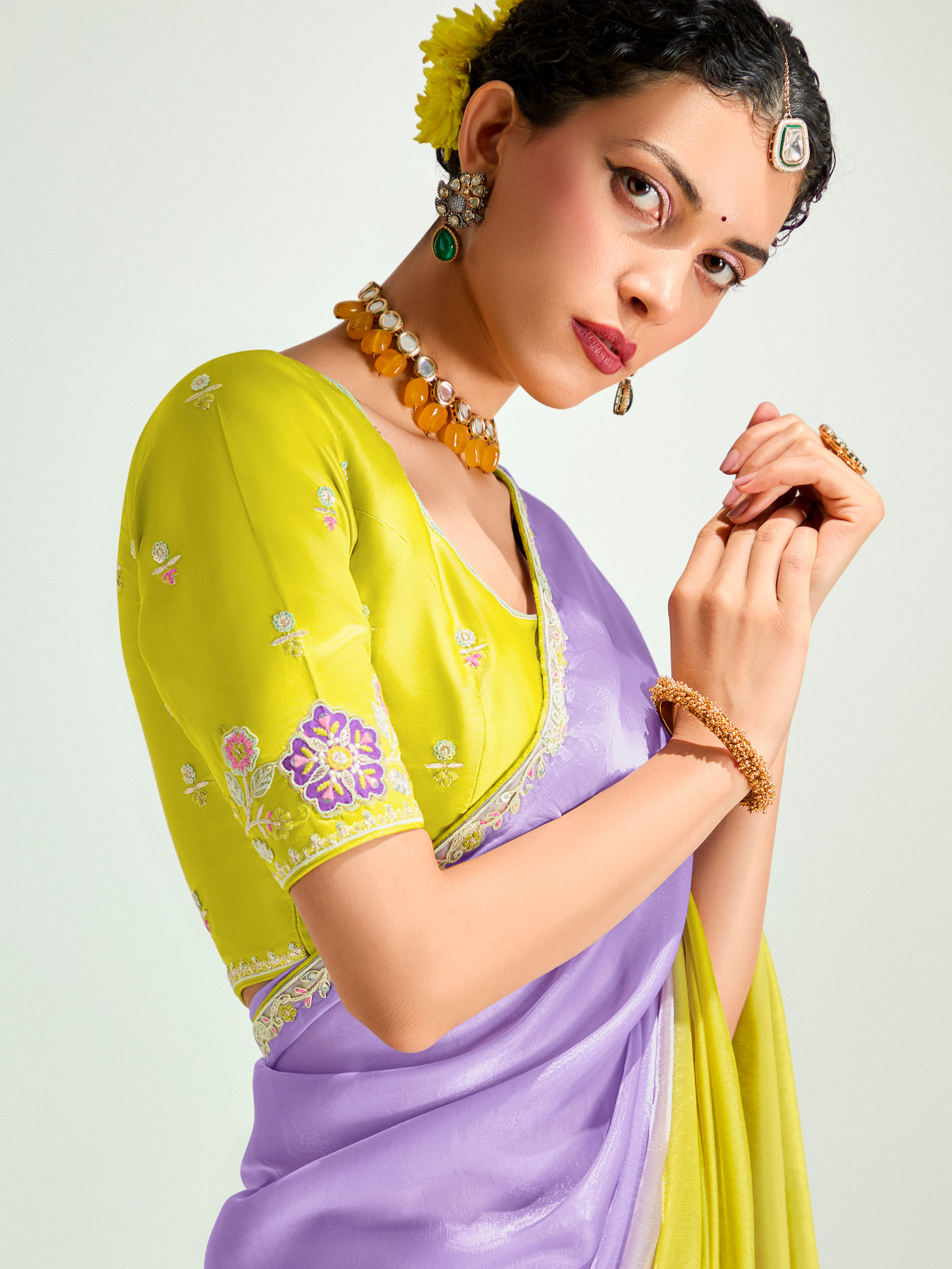 A lovely choice for women who want to shine in a Yellow Organza Tissue Silk Saree at weddings, receptions, and celebrations.