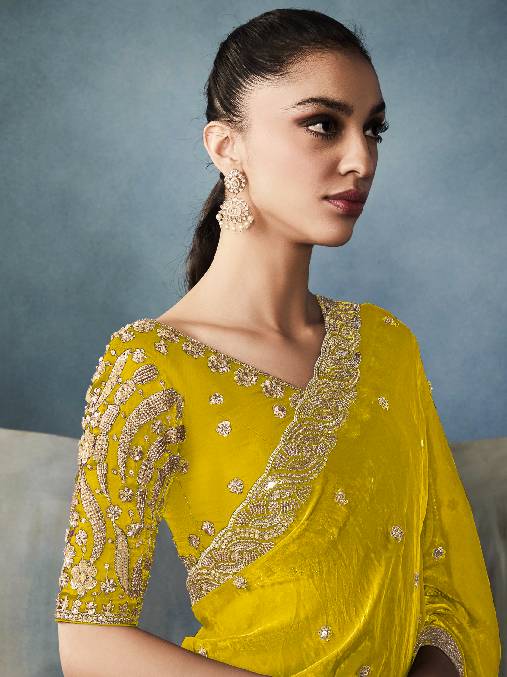 - Yellow Tissue Silk Saree with Heavy Gold Embroidery